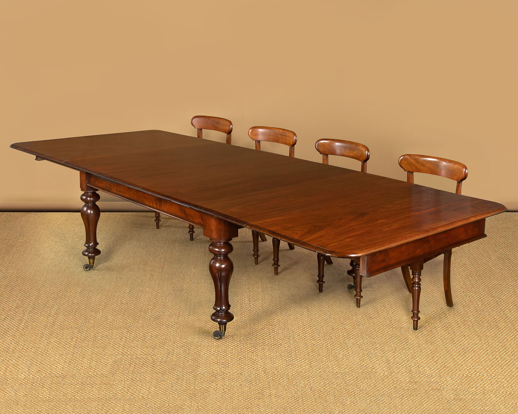 Fabulous 18th.c. oak refectory dining table c.1740. Simple planked top, big enough to seat three down each side, with slim cleats at the ends. Superb base with a slim drawer at each end. Note the unusual shaped detail to the side rails to accommodate the drawer runners. Raised on turned and tapering column legs with a shaped and chamfered detail at the corners of the blocks top and bottom. The legs are joined with a long centre stretcher making it easier to get chairs in at the sides. Excellent condition and lovely original colour. Cleaned and waxed in our workshops.
