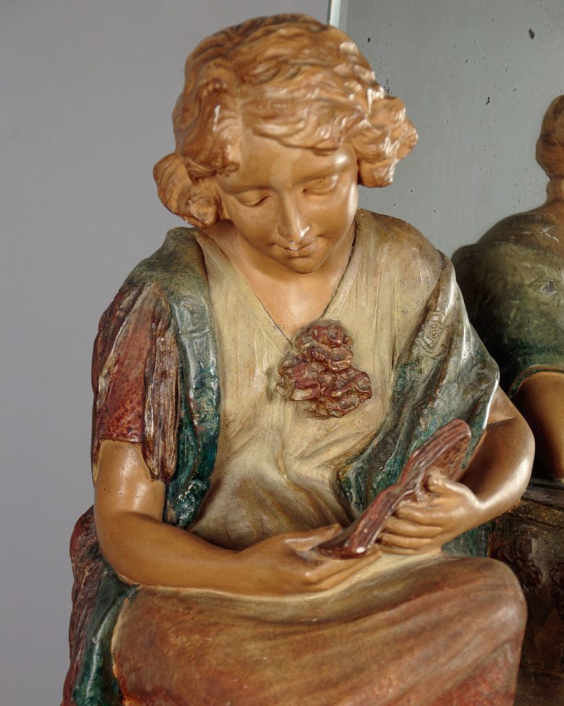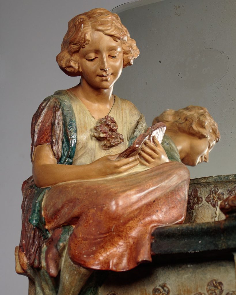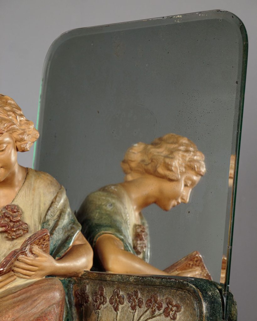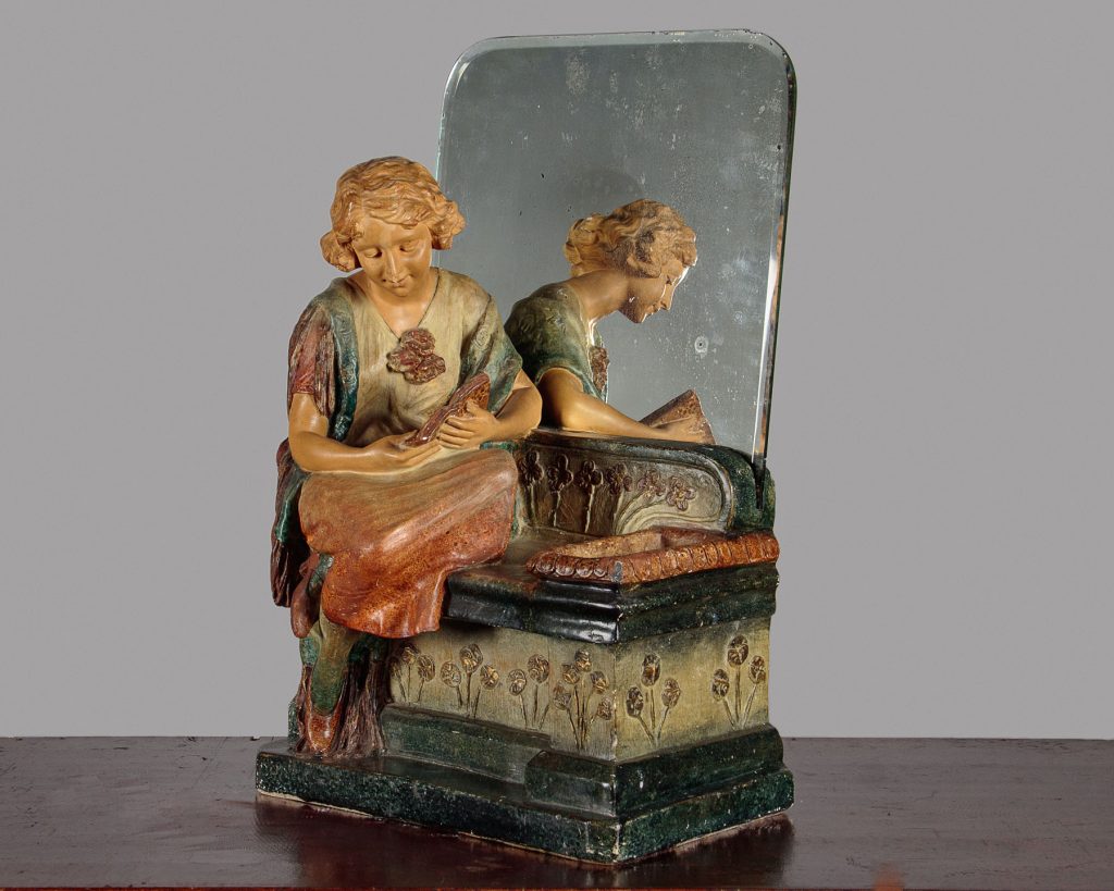 Art Deco Dressing Table Mirror with Chalk Figure c.1930