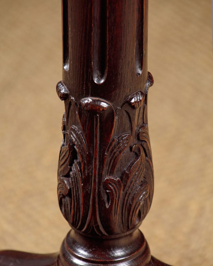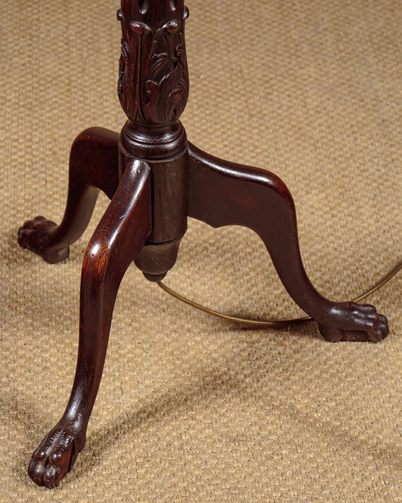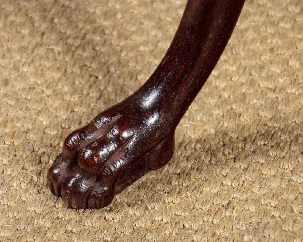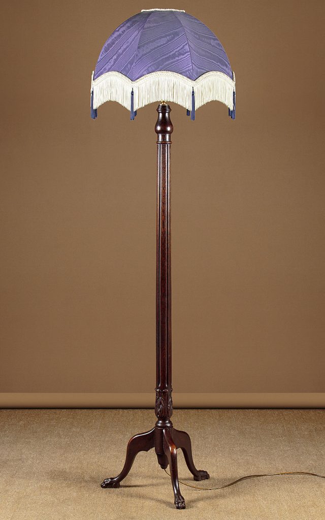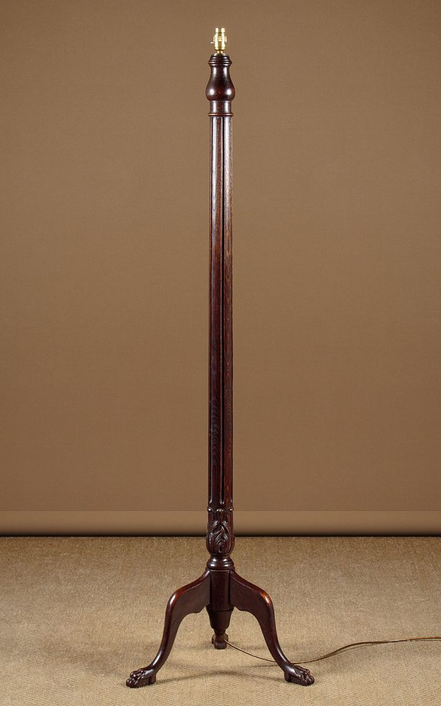Good looking carved oak standard lamp c.1930. Single bulb raised on a turned and fluted column with carved acanthus leaf detail. Raised on carved claw feet. Missing a small portion at the side of one of the feet. Otherwise excellent condition, cleaned and waxed in our workshops. Rewired and PAT tested.