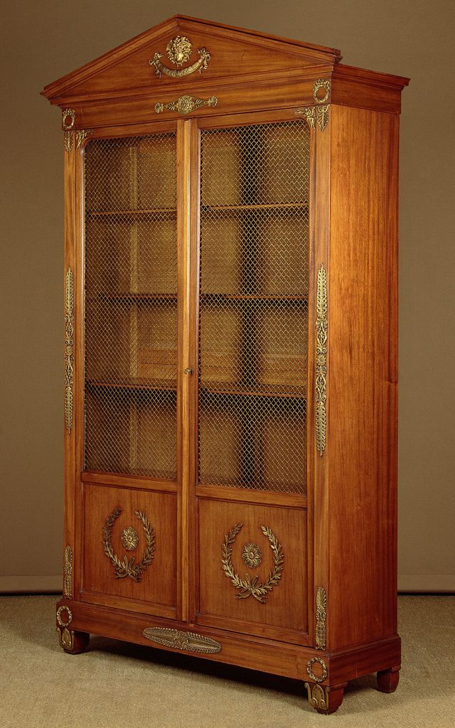 Large Empire Style Brass Mounted Walnut Bookcase c.1930.