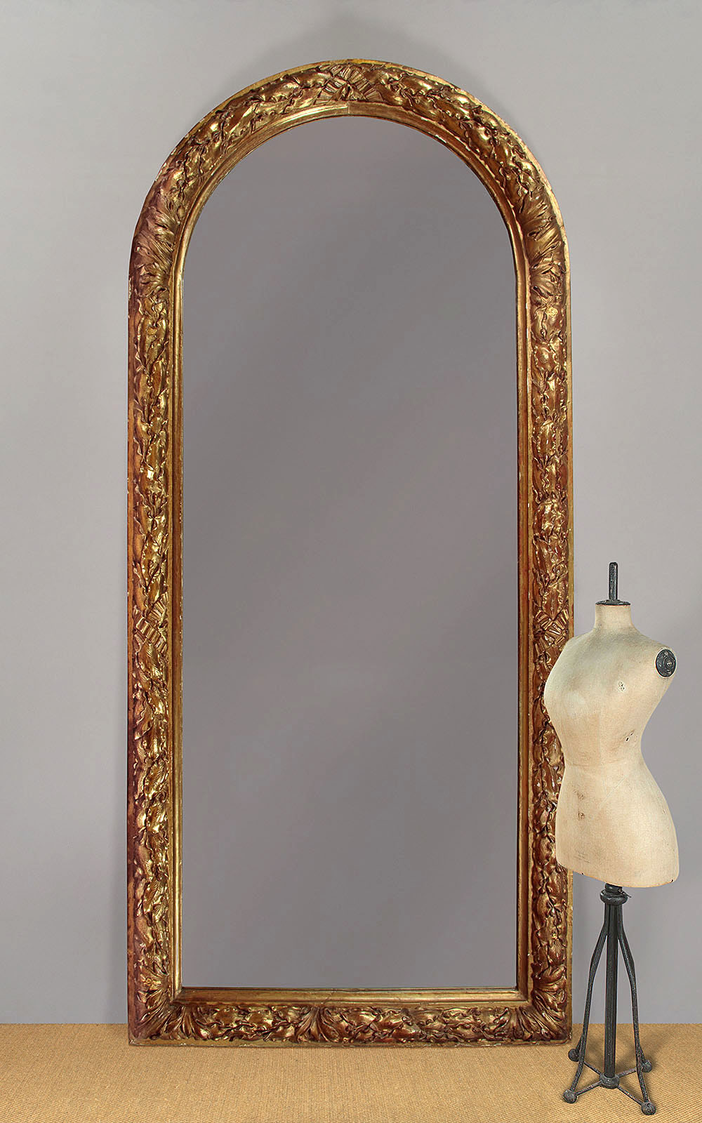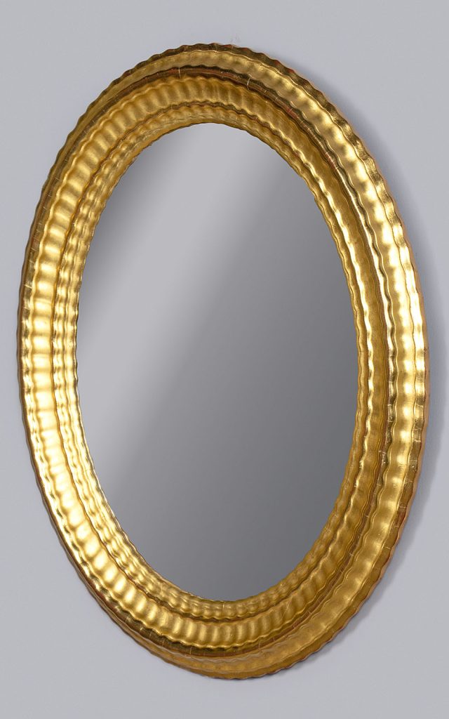 Gilt frame mirror c.1910. 17½" x 24" mirror plate within a broad gilded wood and moulded gesso frame with attractive rippled surface. Bright gilding rubbed through in places to reveal the red ground below. Excellent condition.