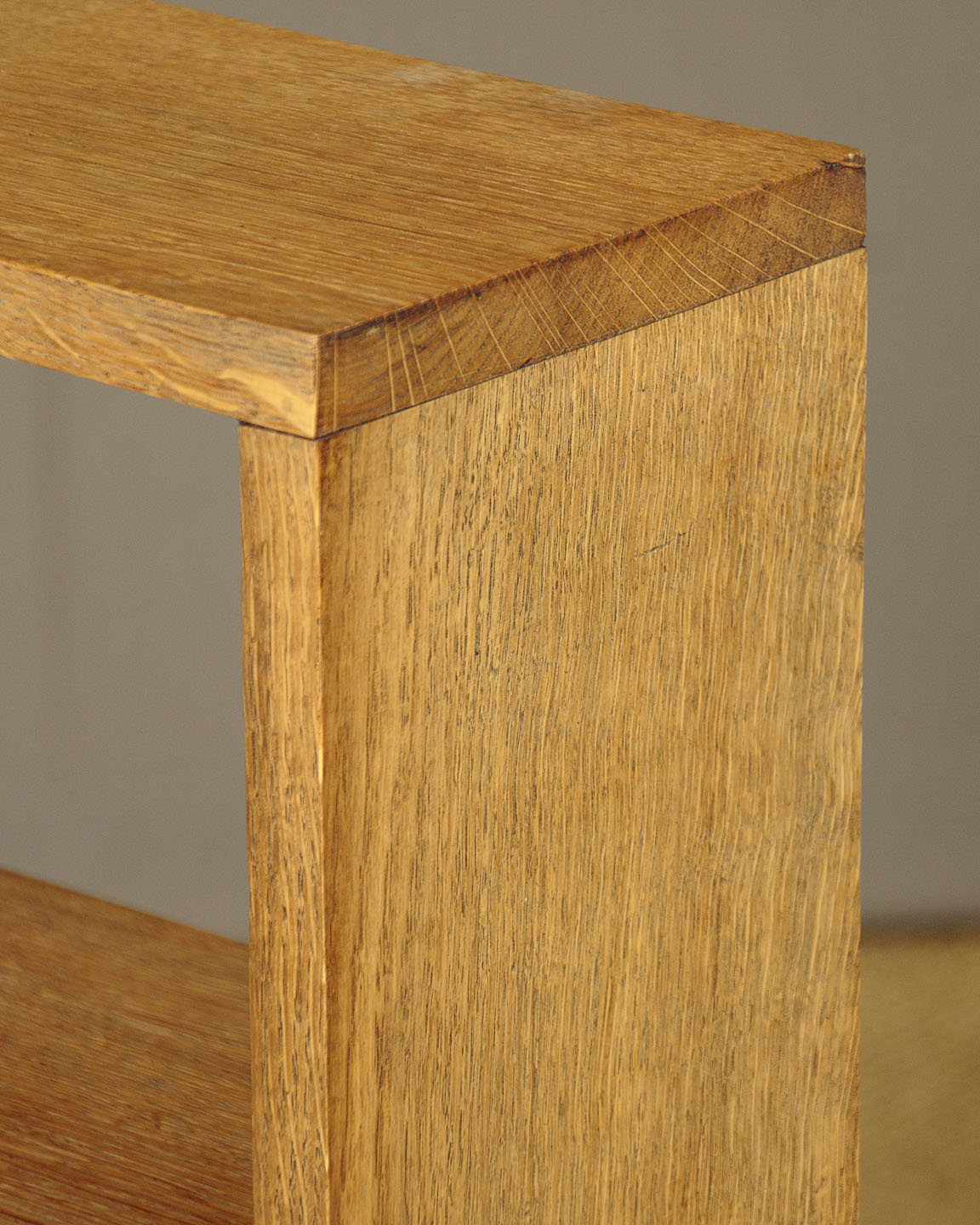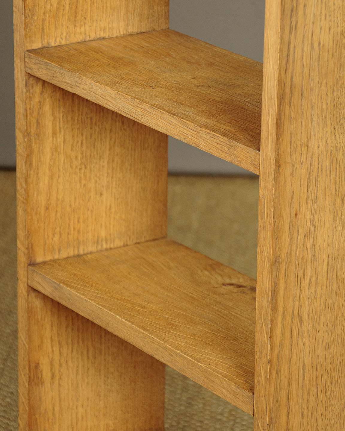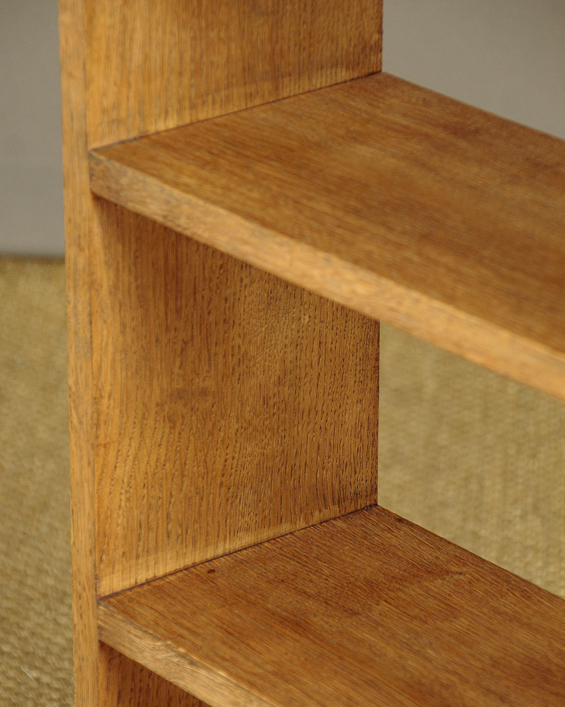 Pair of mid 20th.c. oak bookshelves c.1950. Solid oak throughout, with three shelves (depth 7") for a combined total of 8 feet of shelf space. Simple modernist design in pale oak. Excellent condition, simply cleaned and waxed in our workshops.