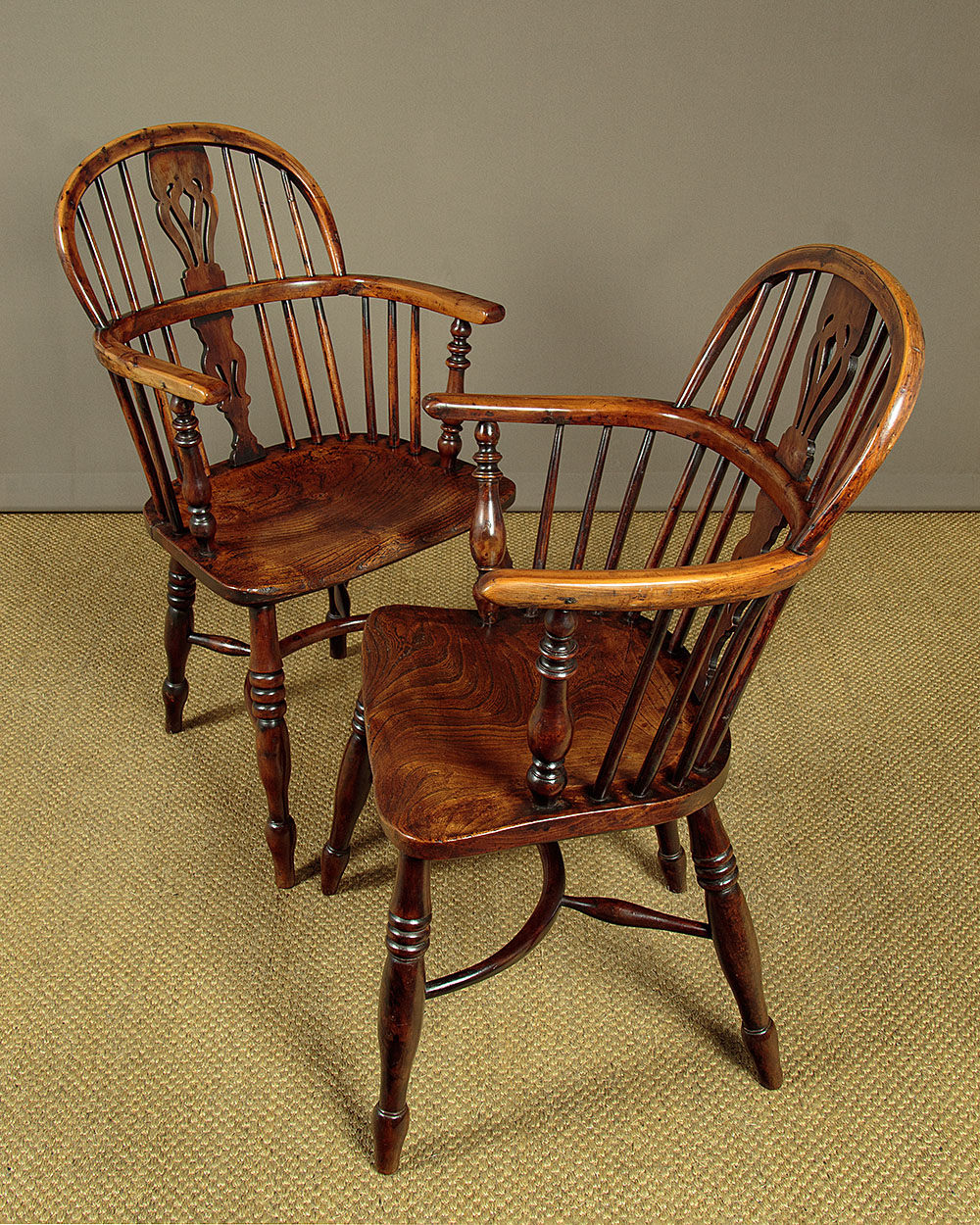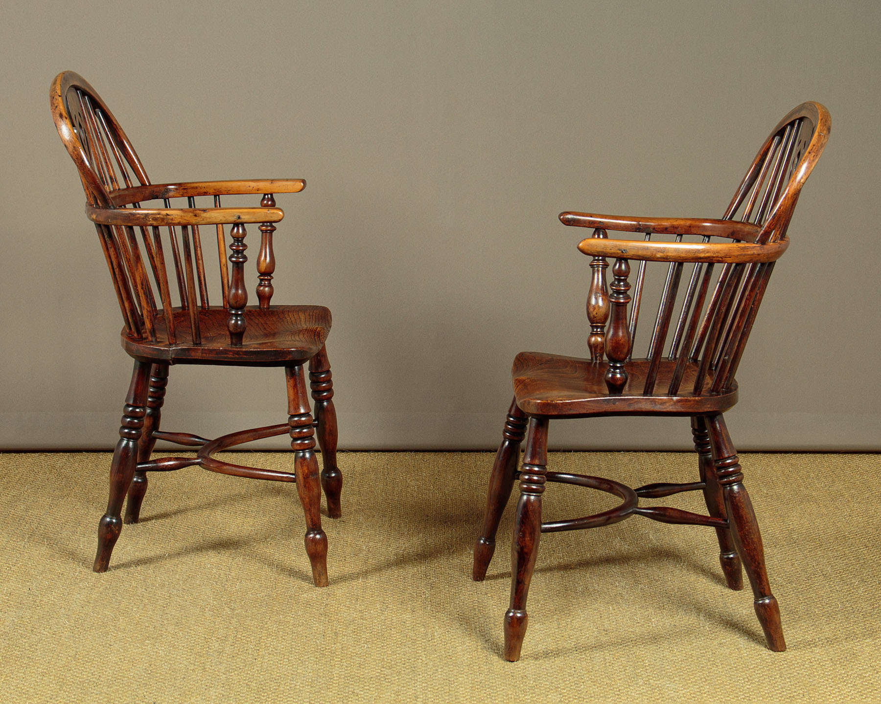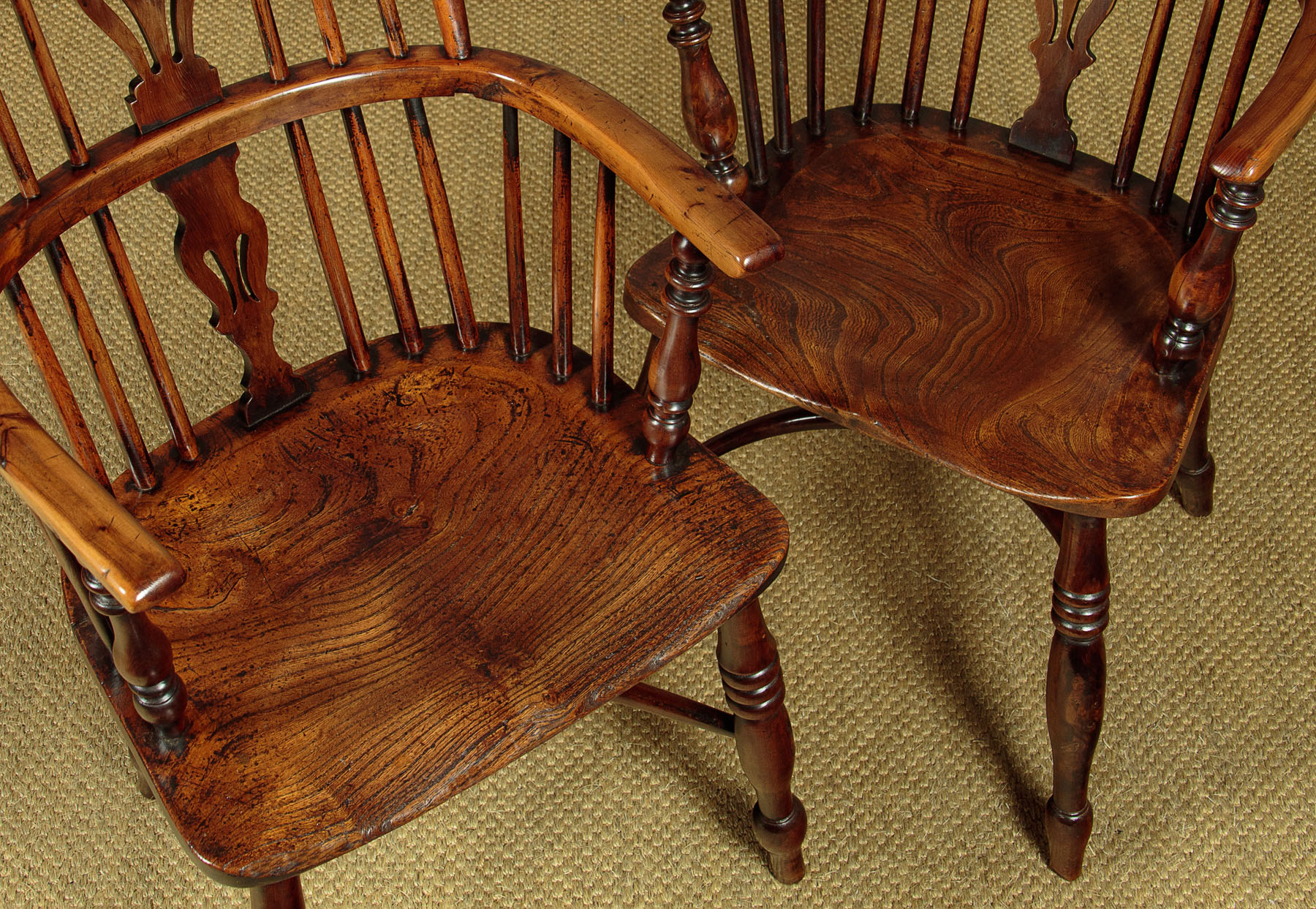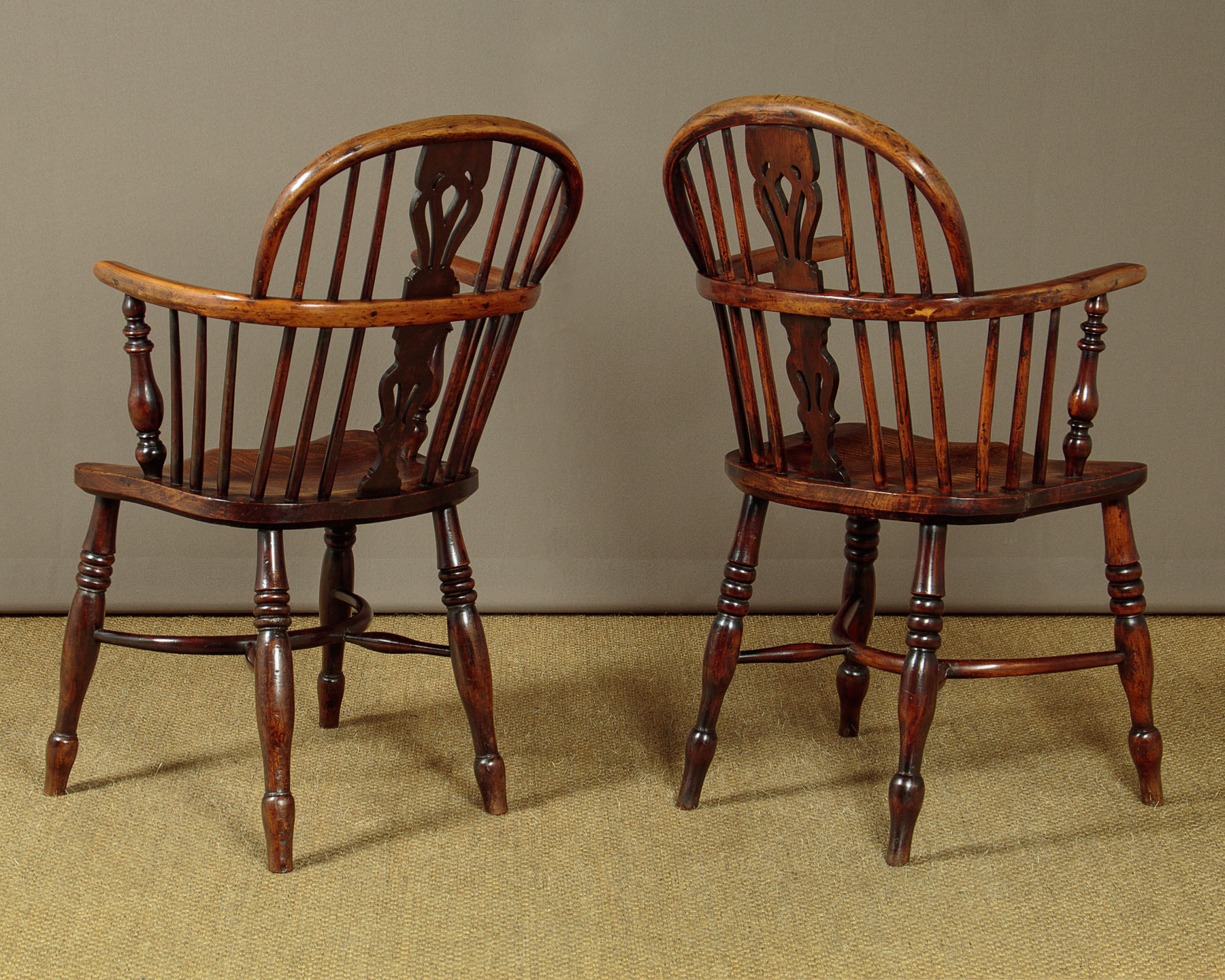 Pair of Yew Wood and Elm Windsor Chairs c.1840