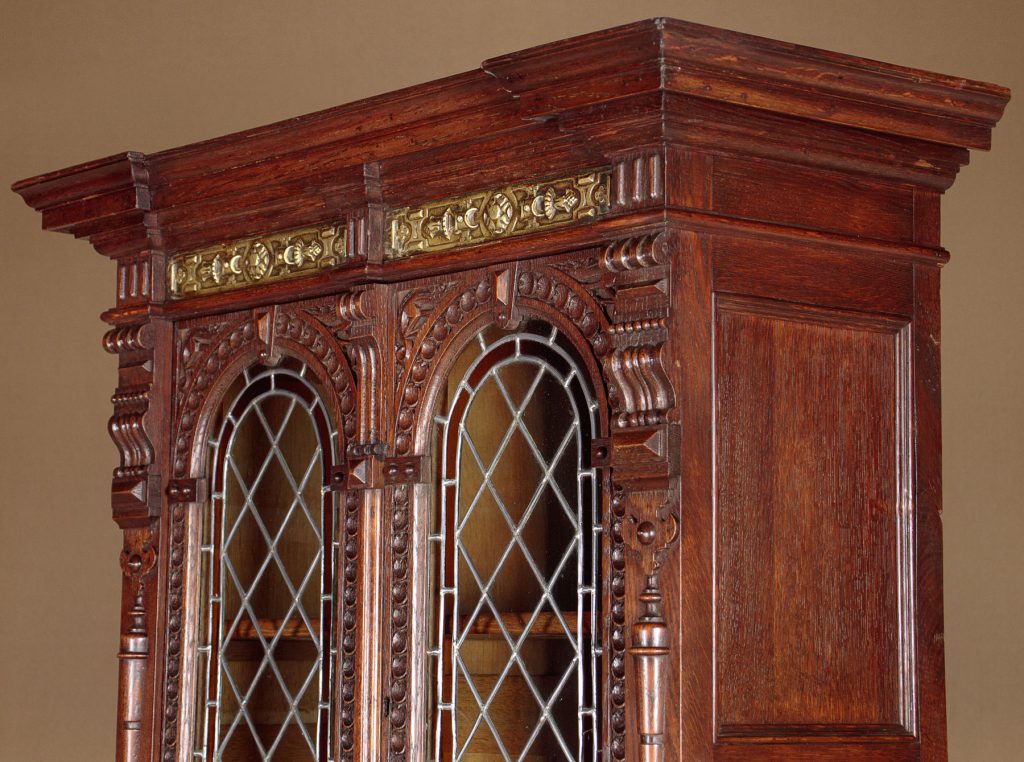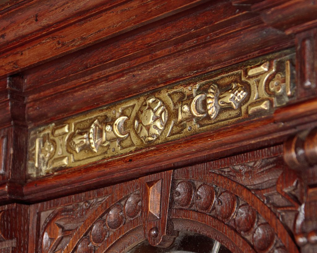 Small Oak Secretaire Bookcase with Brass Panels c.1880