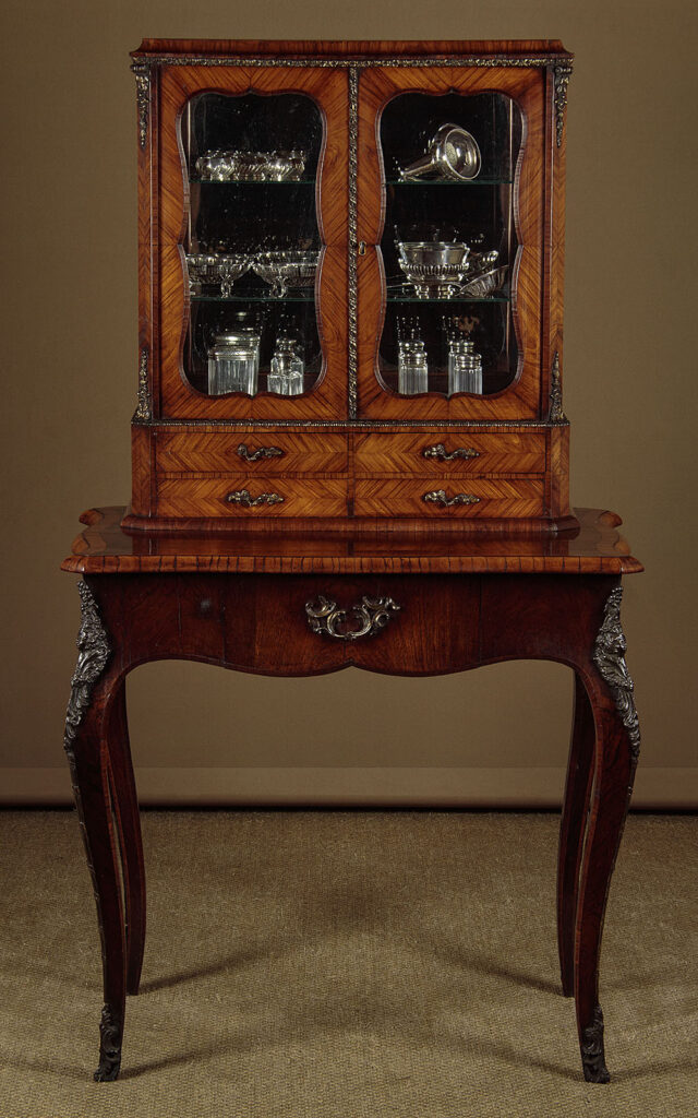 Small Tulip & Rosewood Display Cabinet on Stand c.1880